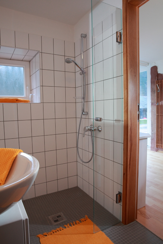 - Bad: Toilette, Waschbecken, italienische Dusche, Fenster, Heizung